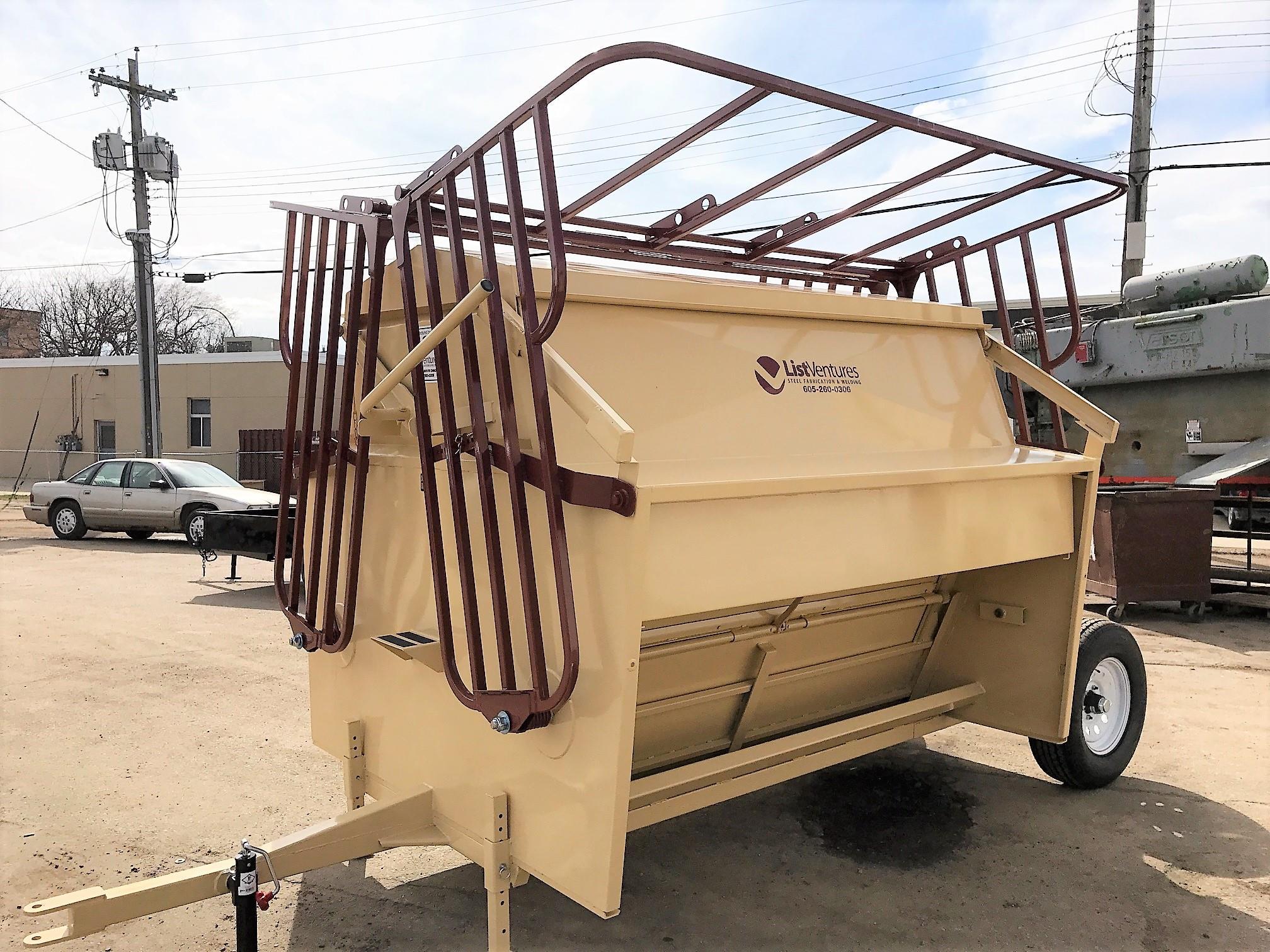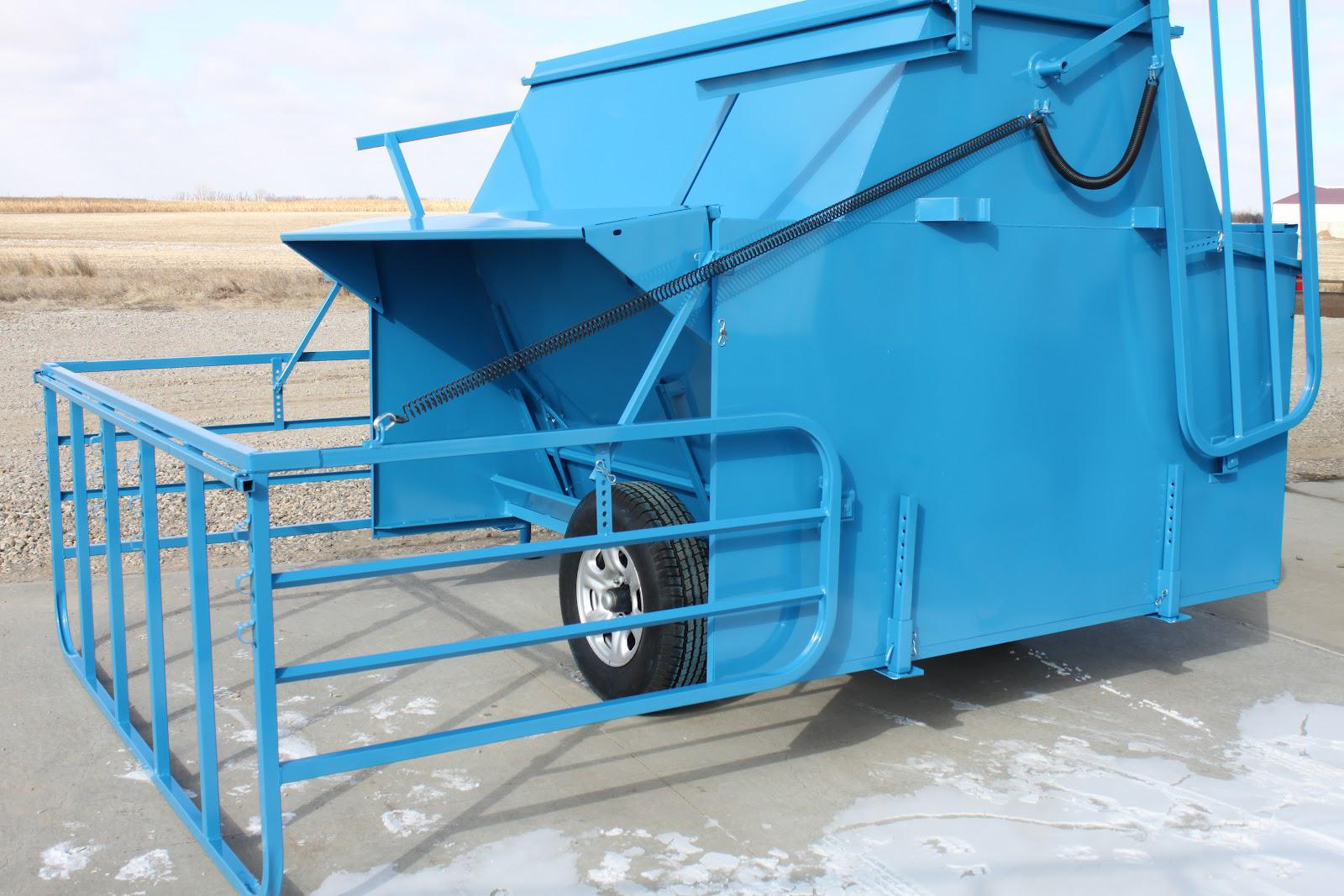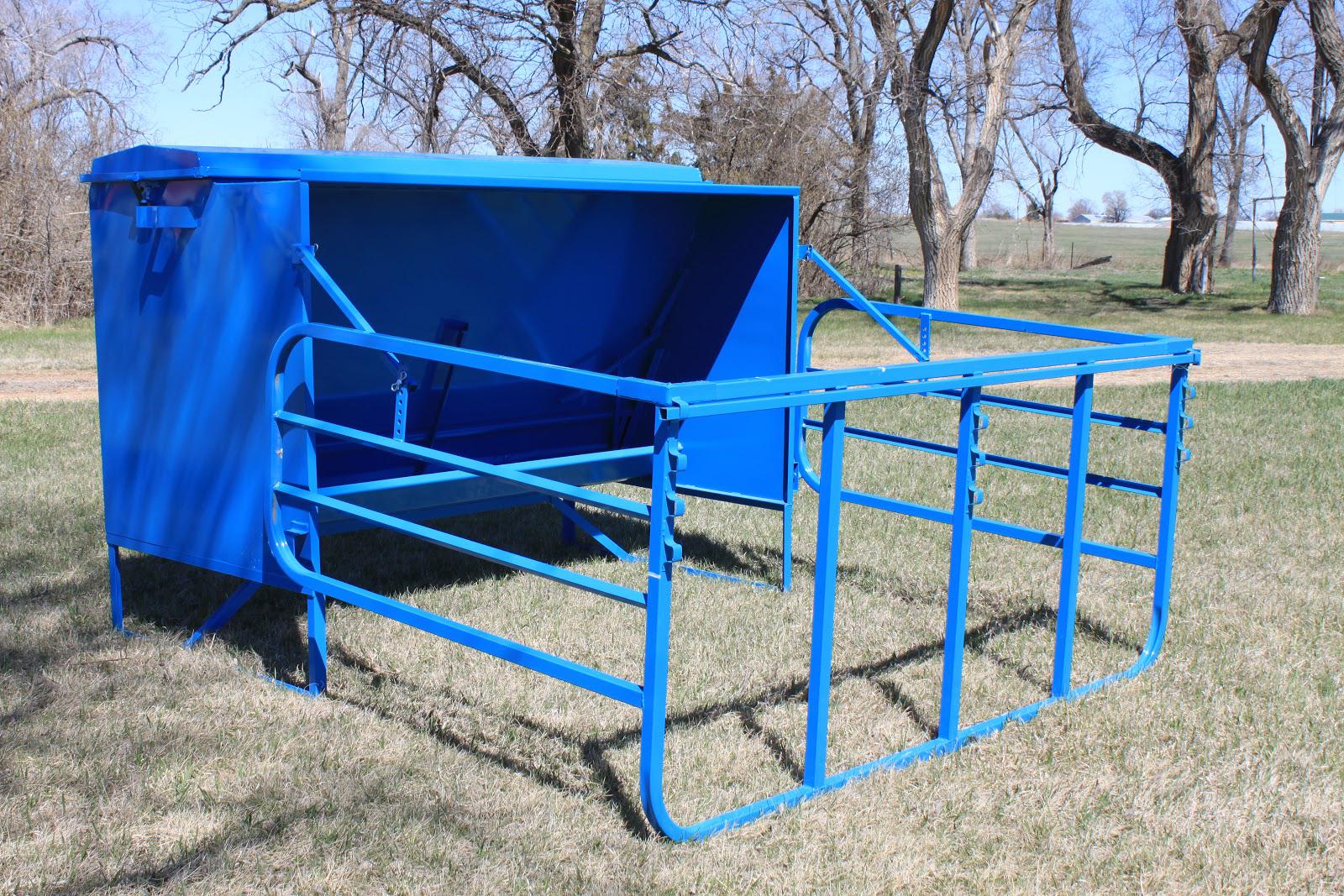 14 GA. Formed & Welded Steel, Ladder & Handle Brackets for easy access, Heavy Duty Screw Jack, Rain Guards, Agitation Bar to Prevent Bridging, Easy Feed Flow, HD 1 5/8" RD Tube Cowguards, Lift Over Cowguards for Moving Over the Road, Front and Rear Leveling Jack, All Lids open from the Ground