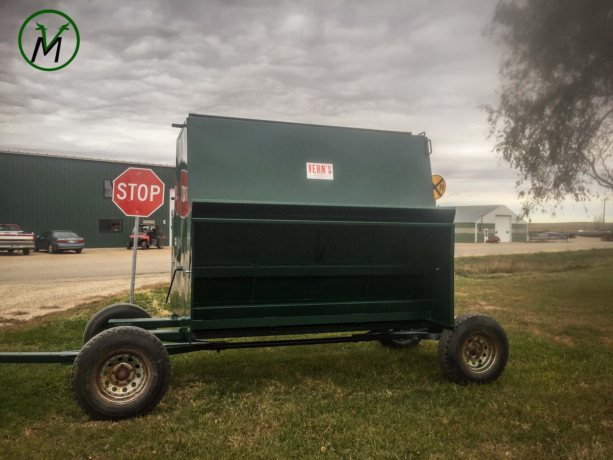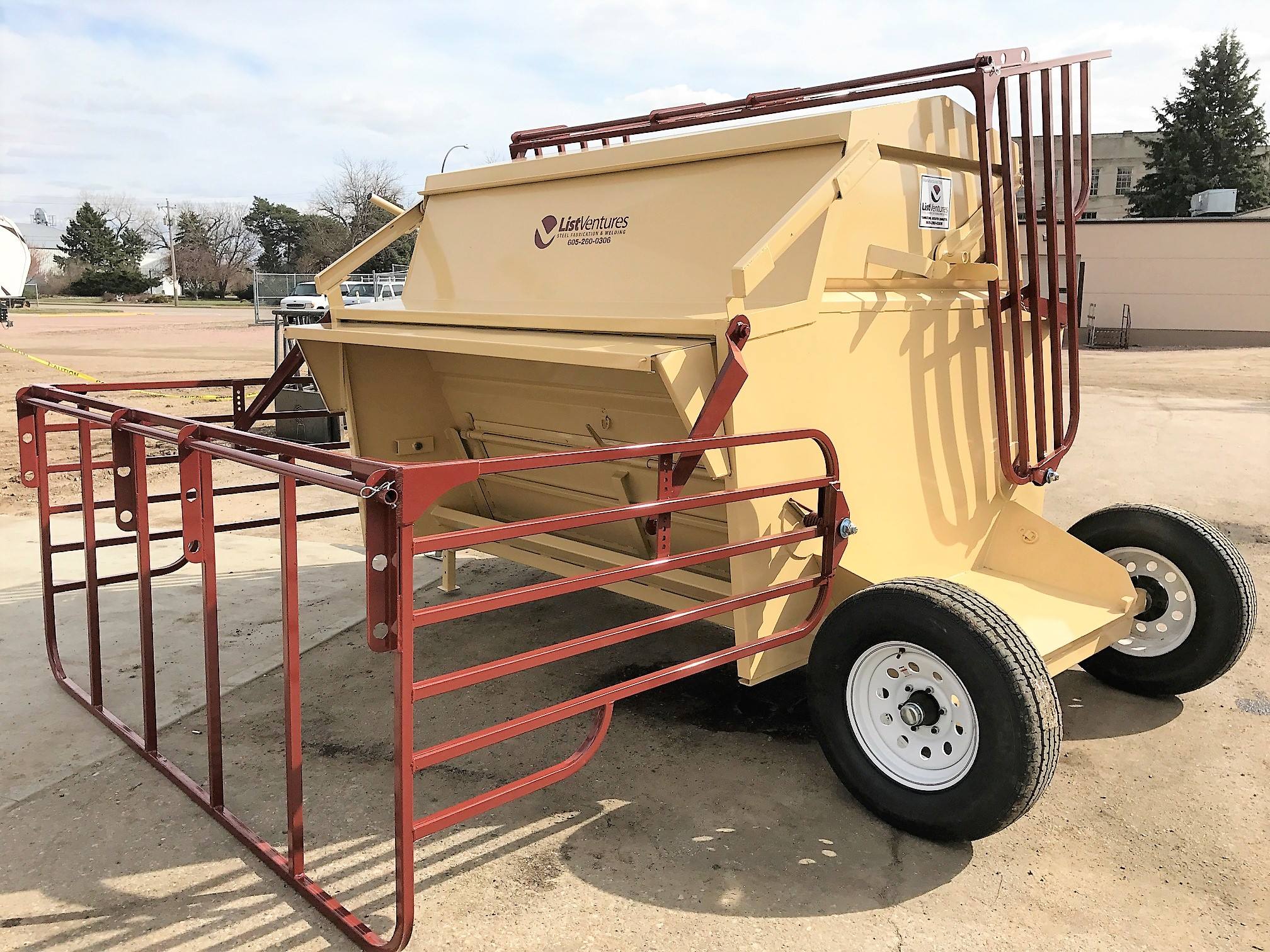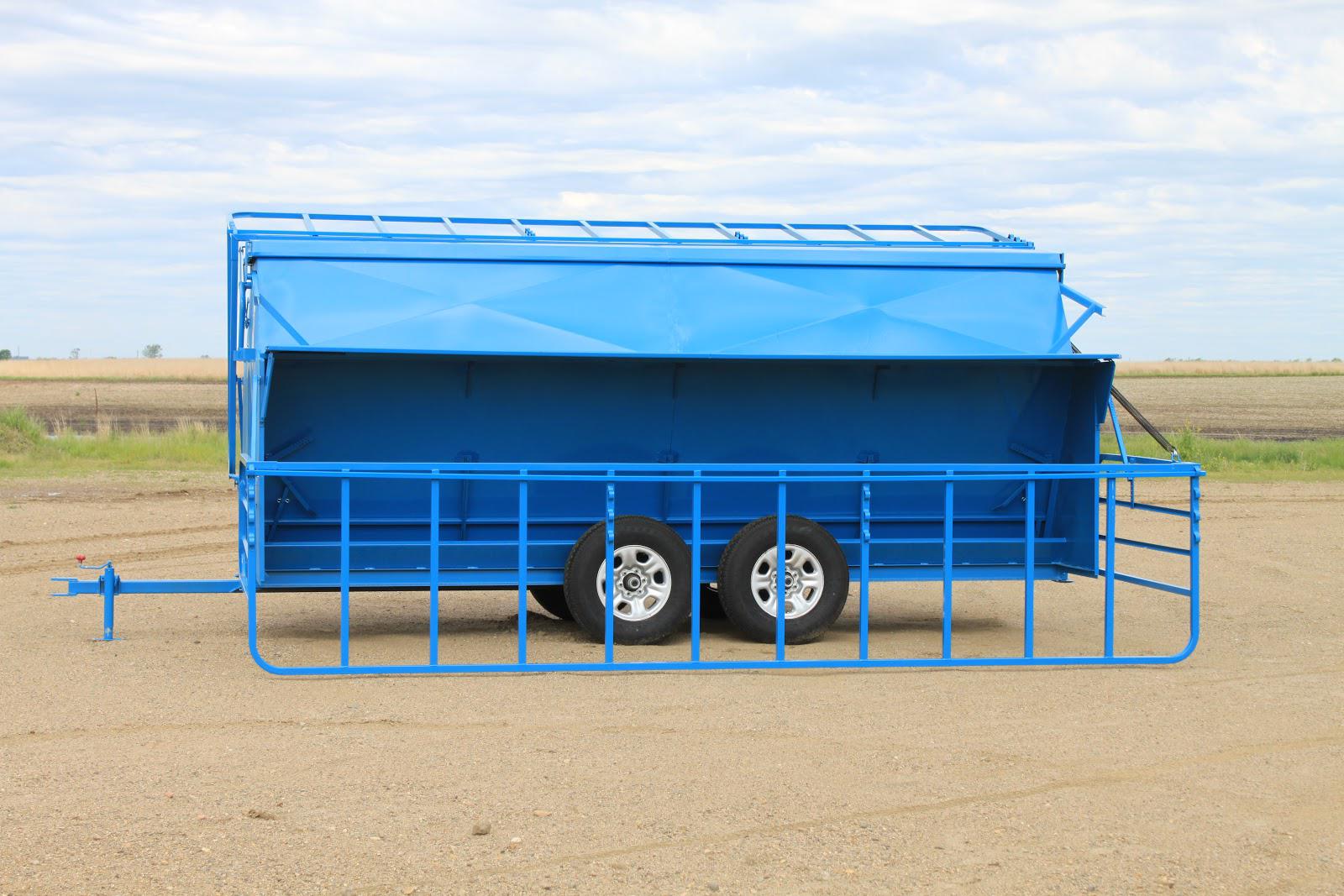 14 GA. Formed & Welded Steel, Ladder & Handle Brackets for easy access, Heavy Duty Screw Jack, Rain Guards, Agitation Bar to Prevent Bridging, Easy Feed Flow, HD 1 5/8" RD Tube Cowguards, Lift Over Cowguards for Moving Over the Road, Front and Rear Leveling Jack, All Lids open from the Ground