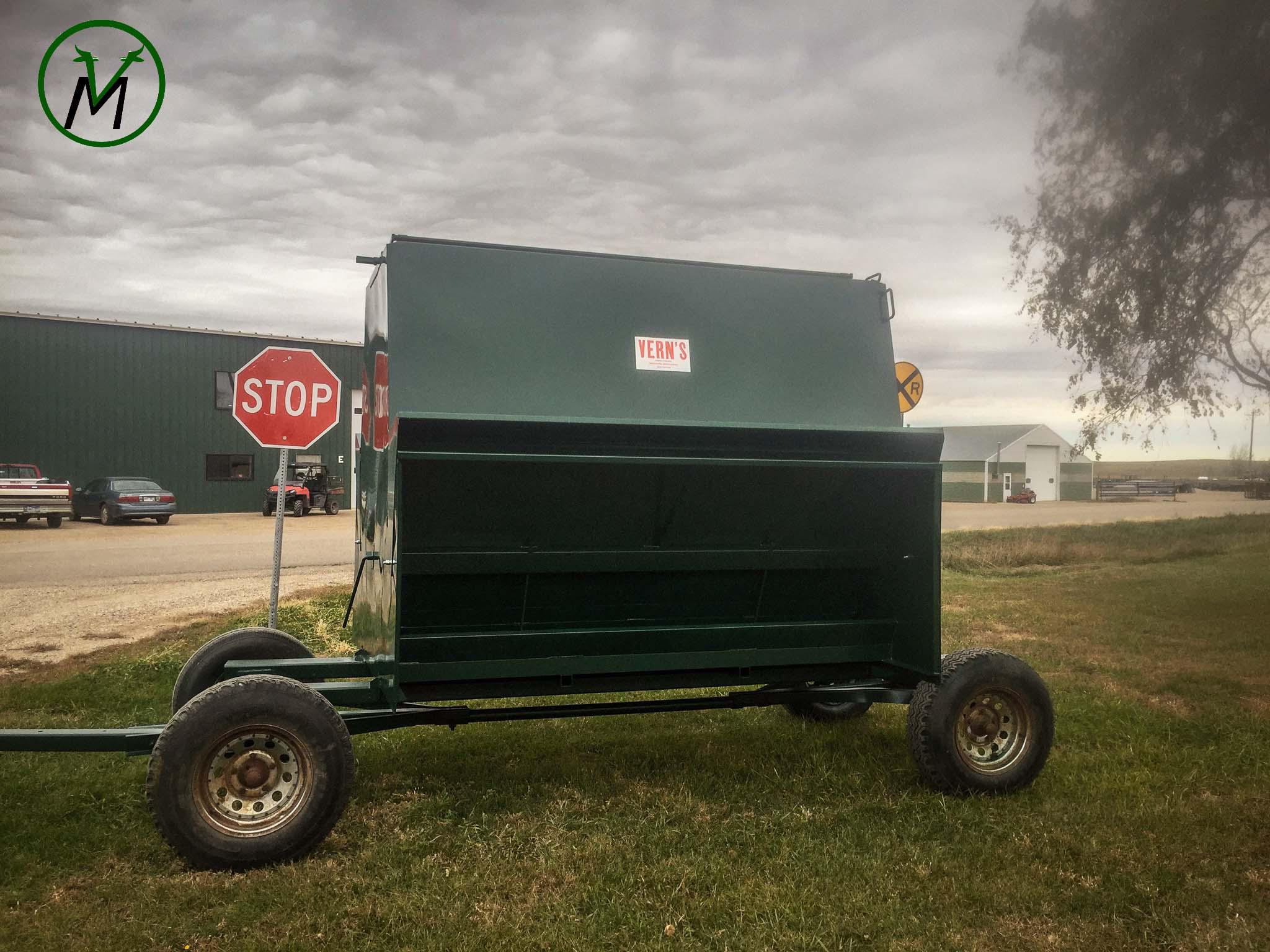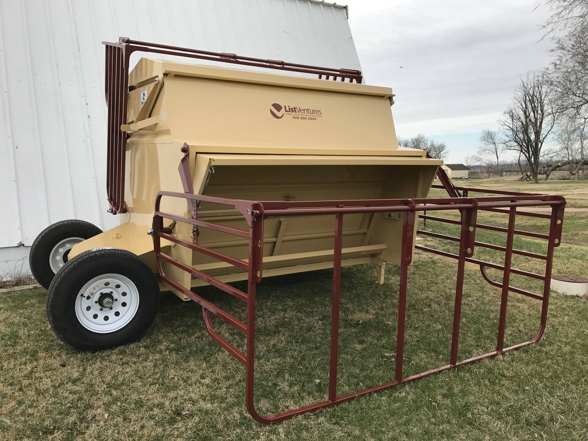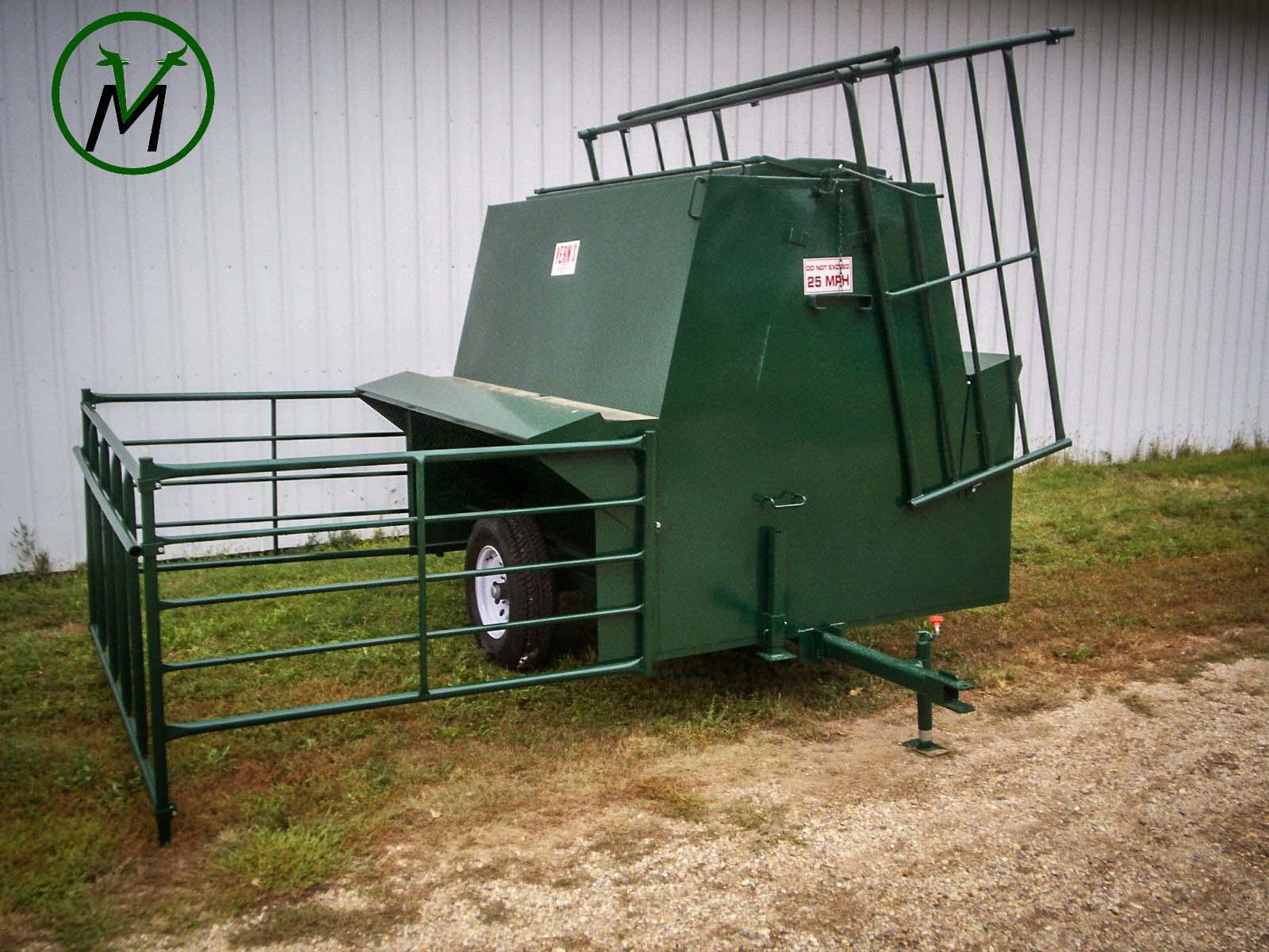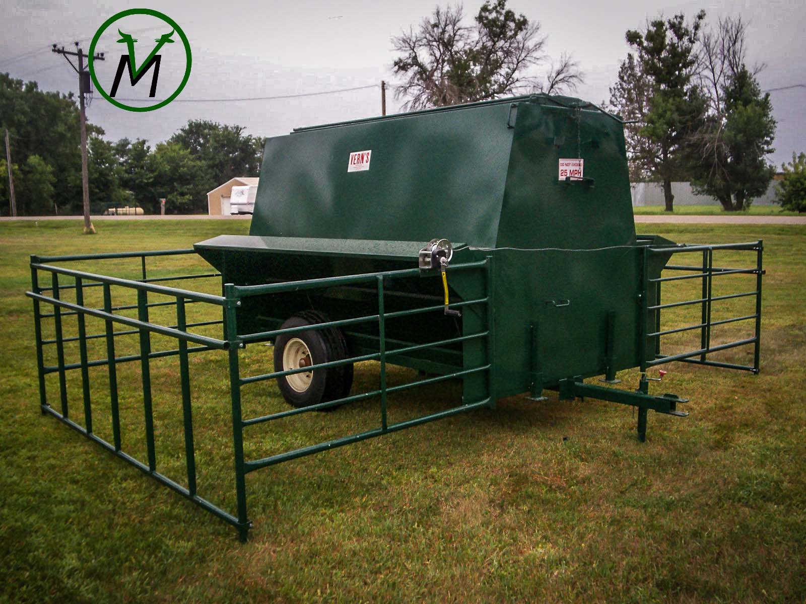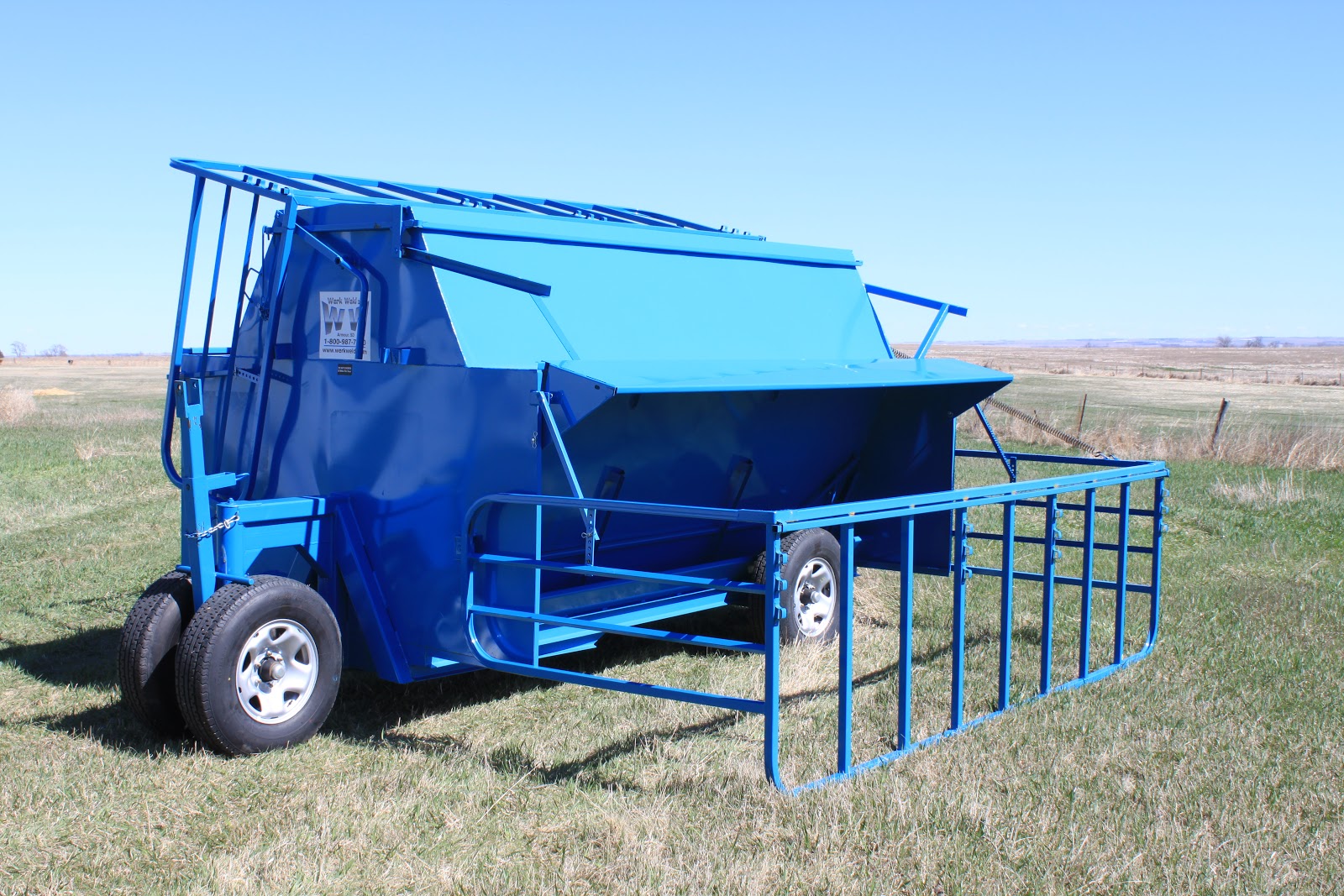 Creep/Self feeders designed for durability and strength. Creep feeders are easily set up without any tools, top lid opens from the ground, front observation step, extra heavy removable creep panels, creep panel hold down bars, four stabilizing jacks, fold out rain awnings, easy flow door adjustment. New 16" 10ply tires, full length top opening for easy filling, lid can be opened with creep panels up or down, four calf height adjustments on creep panels, fully framed feeder, 8’ in length.